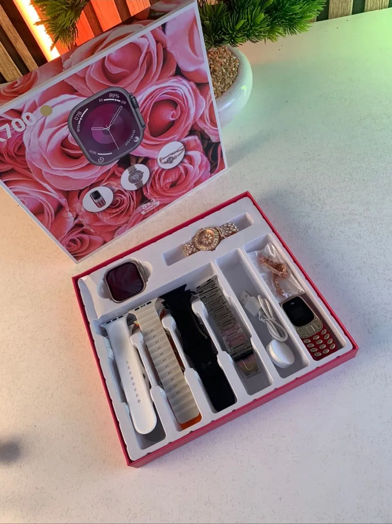 🔥 باك TK700 — الهدية المثالية لي يجمع بين الأناقة والتكنولوجيا!قدّم أو تهدى باك فاخر فيه كلش: Smartwatch عصرية، ساعة نسائية راقية، تليفون صغير Mini Phone، و7 براسيليات تبديل باش تغيّر الستايل كل نهار!🕒 Smartwatch ذكية وعمليةشاشة تاتشمكالمات بلوتوثإشعارات الهاتفقياس الخطوات و ضربات القلببطارية مزيانة للاستخدام اليومي💎 ساعة نسائية فخمةلون ذهبي لامعمرصّعة بالكريستالاتبريصل ميتالي أنيقتليق للمناسبات، الخدمة أو الخروج الخفيف📱 Mini Phone صغير ونافعحجم صغير يجي فالجيب بلا ما يتحسكلافية فيزيائيةمثالي كتليفون ثاني ولا للاستعجال🟢 7 براسيليات تبديلاختار ستايلك حسب المناسبة:سيلكونكويرميـش (metal mesh)ألوان مختلفة🎁 Coffret كامل وجاهز للهداياباك منظم ومقسّمجودة ممتازةفيه كامل الأكسسوارات: شارجور، كابل، و لوجيكيل📦 المحتويات الكاملة للباك :Smartwatchساعة نسائية ذهبيةMini Phone7 براسيلياتالكابلات + العلبة الأصلية